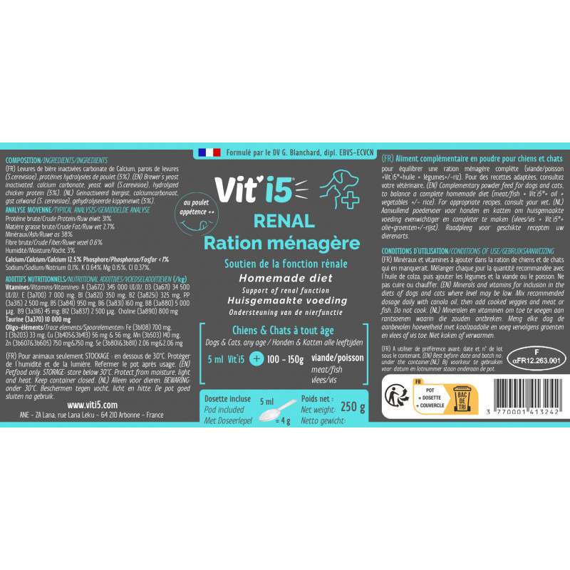 Formulé par le Dr G.Blanchard, Spécialiste en Nutrition Clinique Vétérinaire.